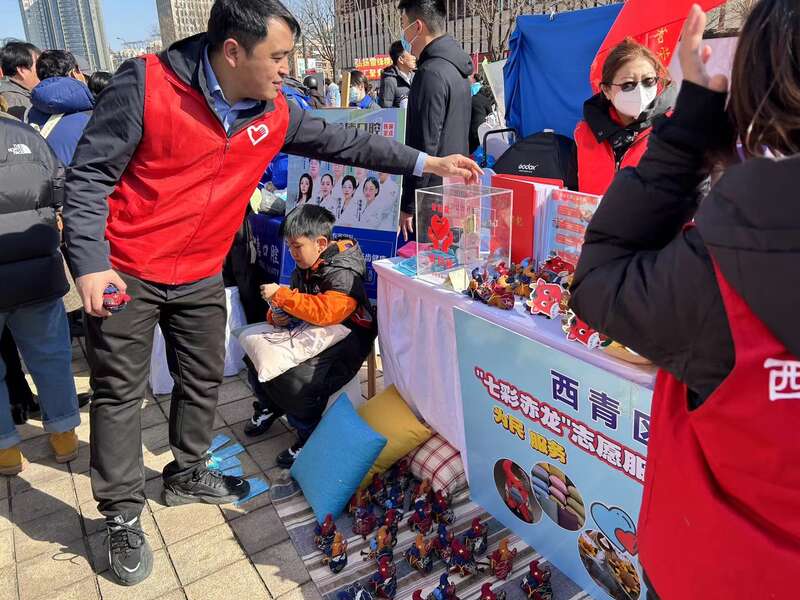 志愿者在天津市青少年街区开展公益活动。朱澹清/摄