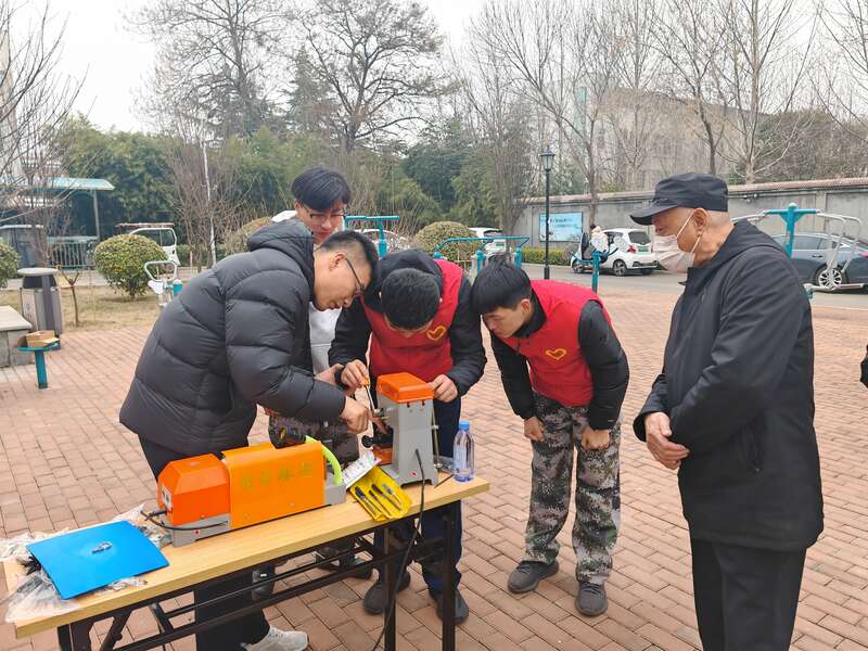 济宁市技师学院青年志愿者进社区开展“小螺丝”志愿服务。济宁市技师学院团委供图