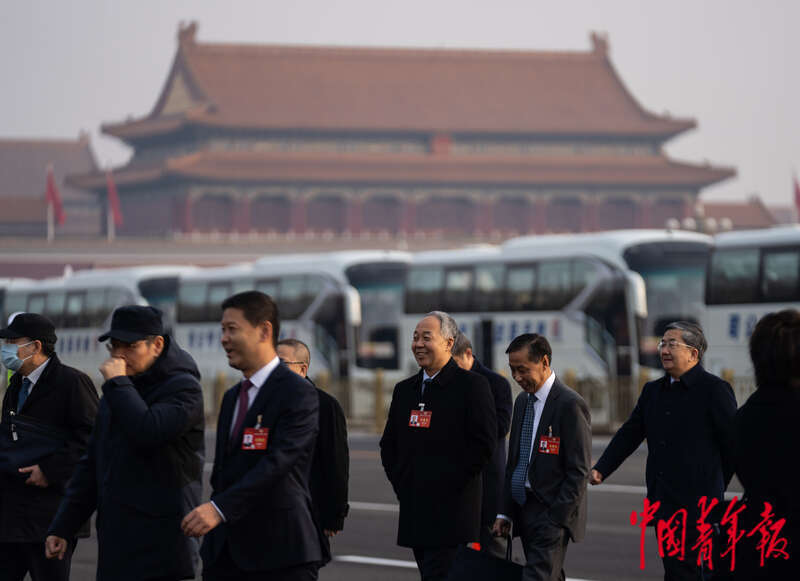 3月7日,北京天安门广场,全国政协十四届二次会议第二次全体会议即将开始,参会委员走向人民大会堂。中青报·中青网记者 李峥苨/摄