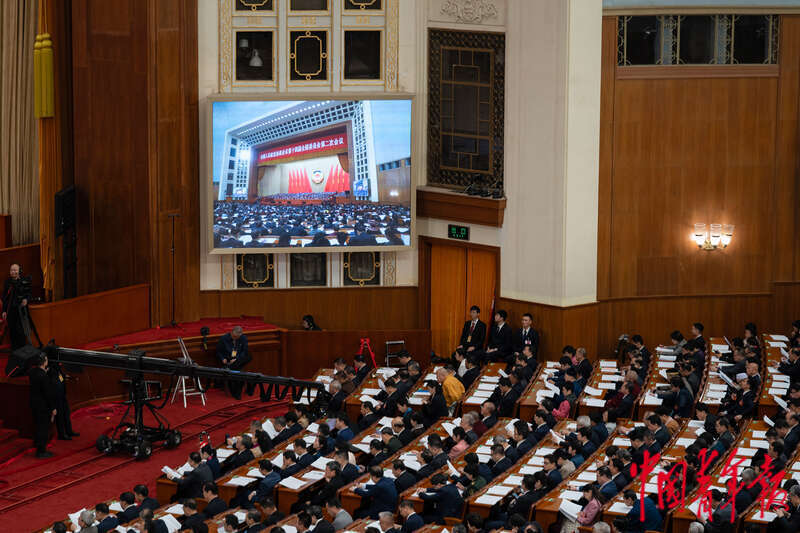 3月7日,北京人民大会堂,全国政协十四届二次会议第二次全体会议上,委员们在认真听会。当日上午,全国政协十四届二次会议举行第二次全体会议,14位委员进行大会发言。中青报·中青网记者 李峥苨/摄