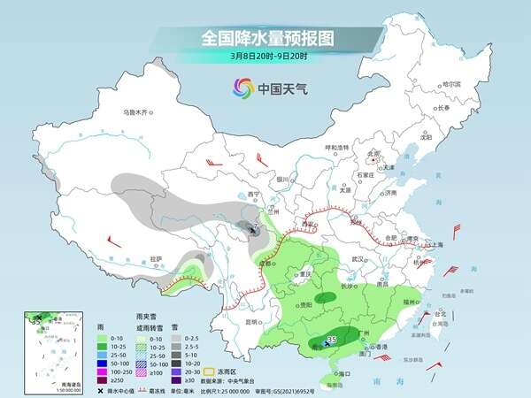 对南方而言,未来10天还将遭遇两轮降雨。江南、华南及西南地区东部等地雨日能有4~8天,主要降水时段为9-11日、13-16日。