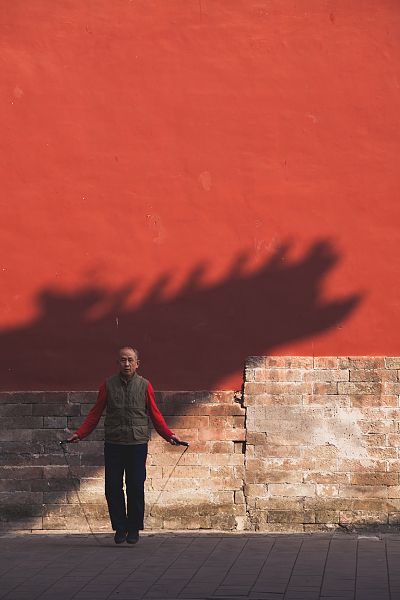 2024年3月8日,北京,图为北海公园内晨练的市民。