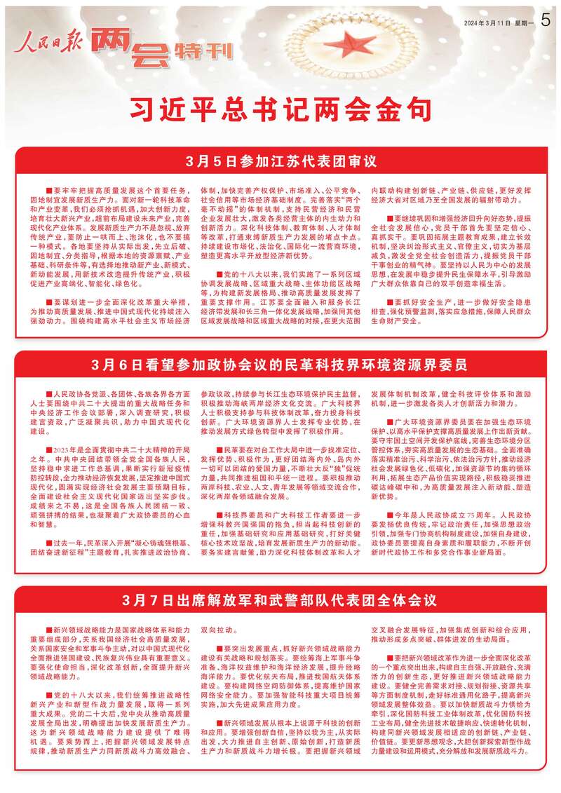 ■科技界委员和广大科技工作者要进一步增强科教兴国强国的抱负,担当起科技创新的重任,加强基础研究和应用基础研究,打好关键核心技术攻坚战,培育发展新质生产力的新动能。要务实建言献策,助力深化科技体制改革和人才发展体制机制改革,健全科技评价体系和激励机制,进一步激发各类人才创新活力和潜力。
