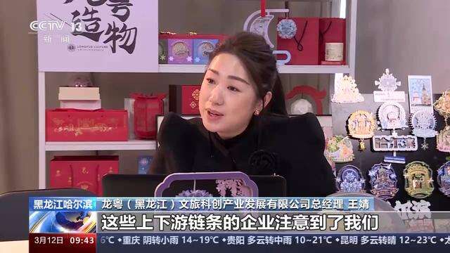 龙粤(黑龙江)文旅科创产业发展有限公司总经理 王婧:全国很多同行业的这些上下游链条的企业注意到了我们,成都、义乌、重庆、上海都有他们的设计工作室,还有数字化赋能的工作室,还有一些工厂来跟我们联系,希望我们去考察、去对接、去合作。