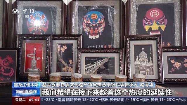 赫哲族非物质文化遗产鱼皮技艺市级代表传承人 赵同华:冰雪热也为我们销售渠道拓宽了市场,我们希望在接下来趁着这个热度的延续性,能够把我们非遗产品的销路打开。