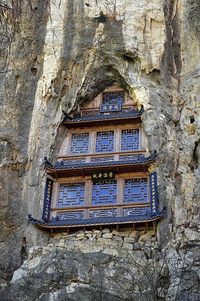 2024年3月11日,贵州省毕节市,织金县龙场镇阳光村营上古寨里的洞中人家,洞中人家别具一格的洞外窗户。