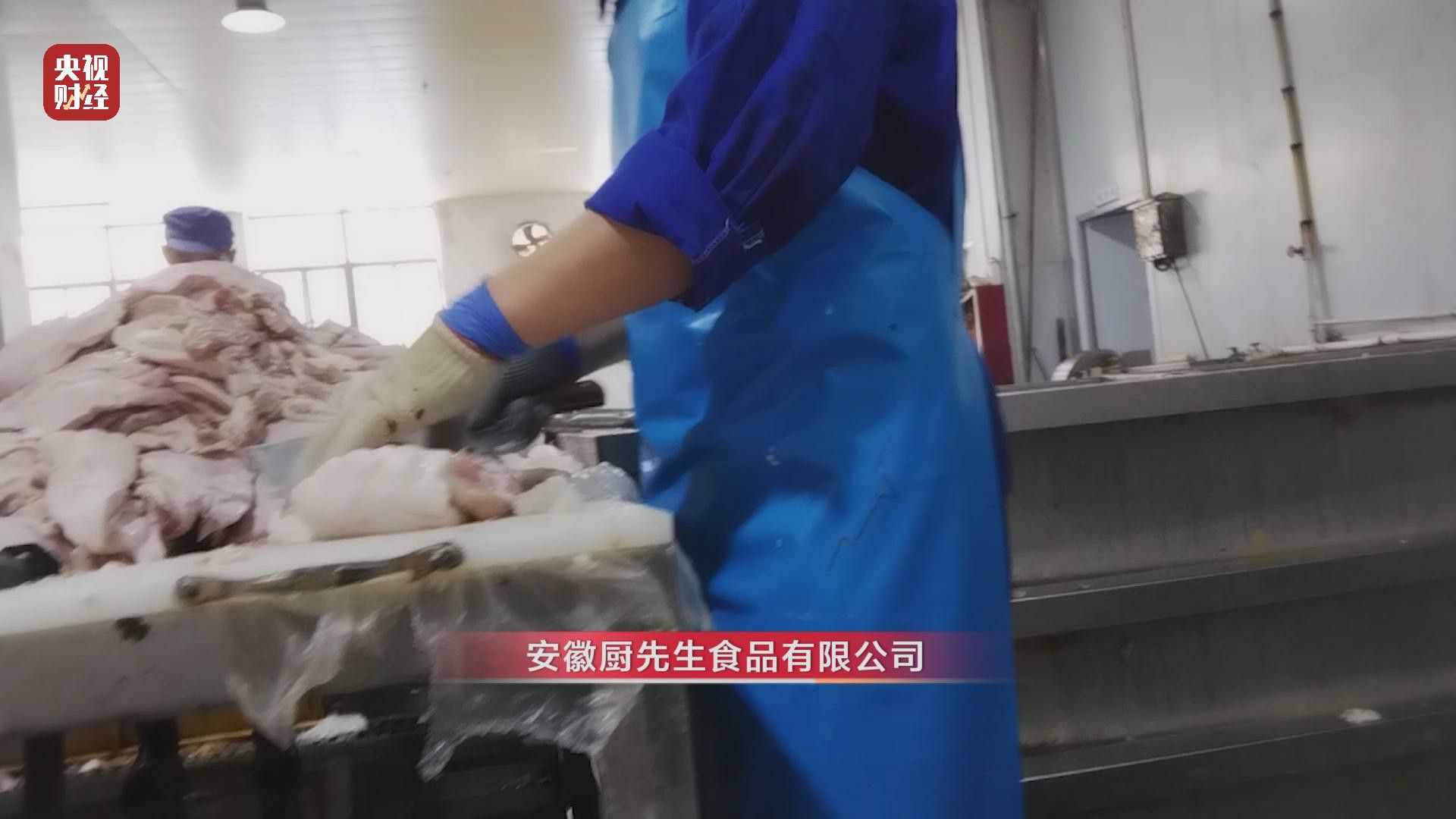 安徽厨先生食品有限公司 工作人员:还是会留一些腺体,上面不留一点腺体,底下红肉就被修掉了。