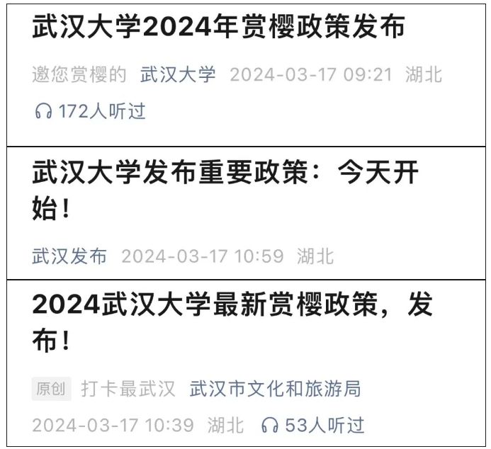今年赏樱活动有什么特殊安排?除了继续专设校友赏樱通道外,武汉大学党政办公室负责人表示: