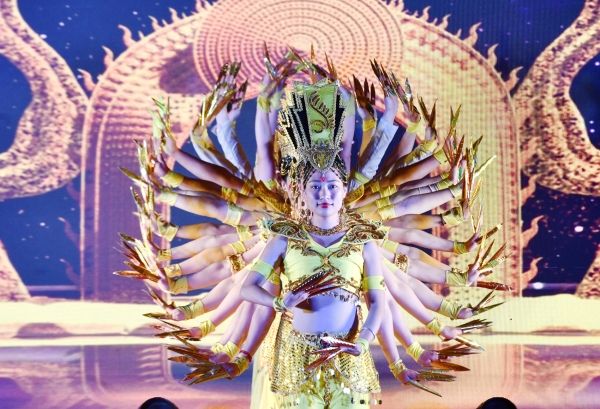 2024年3月19日晚,残疾人文艺工作者在石家庄市栾城会堂表演经典舞蹈作品《千手观音》。