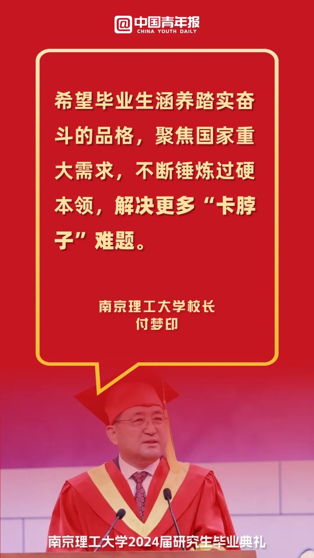 南理工校长付梦印在讲话中勉励全体毕业研究生“做守正创新的时代先锋”。