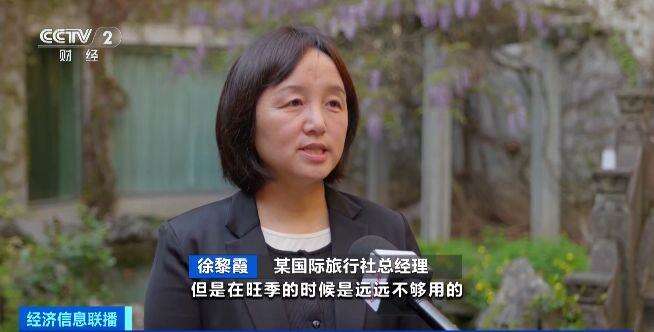 某国际旅行社总经理 徐黎霞:1到4月份,我们目前接待了约240个团,大概10个英文导游。但在旺季的时候远远不够用,希望能达到15个到20个的储备量。