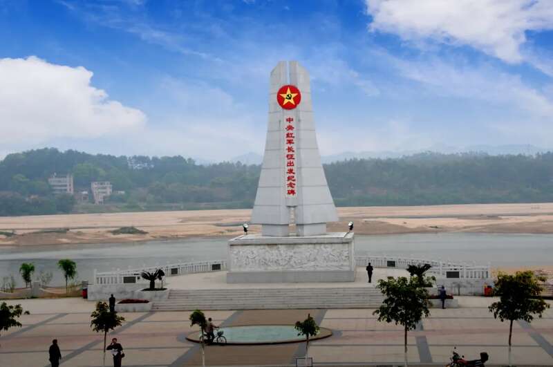 中央红军长征出发纪念碑高19.34米,底座边长10.18米,象征1934年10月18日傍晚,中央领导机关等在这里渡过于都河,开始举世闻名的二万五千里长征,因而于都县城东门渡口也被称为“长征第一渡口”。