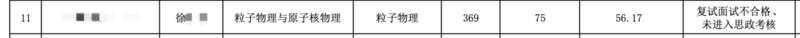 4月8日晚,兰大公布的研究生拟录取名单显示,徐某某再次被刷,原因为“复试面试不合格,未进入思政考核”。名单公布后,不少评论称赞“兰大听劝”,也引发了小部分人对于复试成绩公正与否的关注。羊城晚报记者从公布的名单发现,“粒子物理与原子核物理专业”此次共有15名调剂考生,共录取8人。徐某某初试总分369分,排名第六,复试笔试成绩排名第四(并列),而复试面试成绩为56.17,成绩不合格,排名第十一。记者注意到,相比徐某某在南京大学硕士研究生录取中专业分第一的表现,此次兰州大学硕士研究生调剂录取中,徐某某各个环节的分数并不算特别出色,初试成绩中,有多名考生分数在380分以上。而最后的录取结果,初试第一和第五的考生均被刷下来,看不出徐某某是否被“特别照顾”。