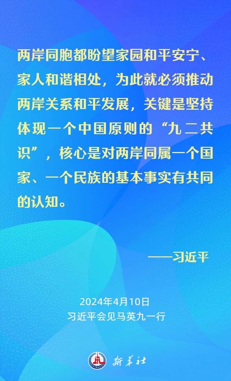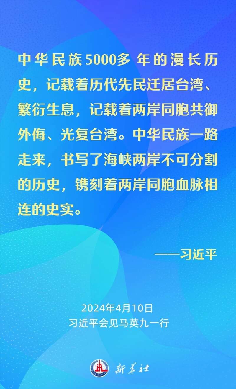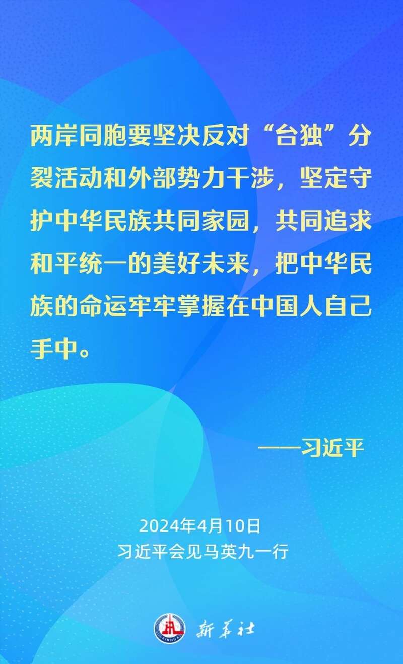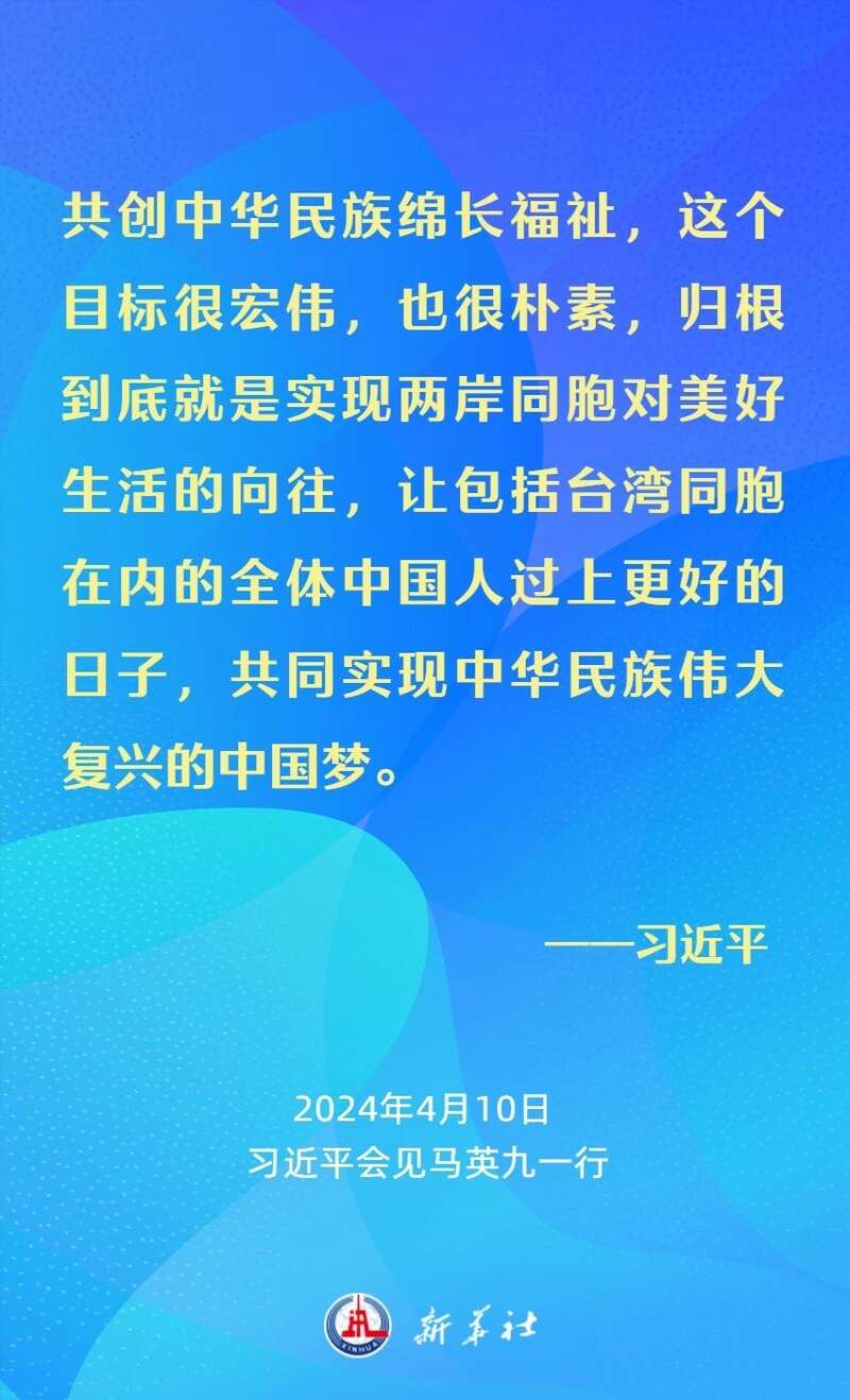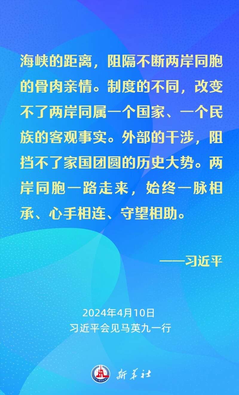 习近平强调,两岸同胞有共同的血脉、共同的文化、共同的历史,更重要的是我们对民族有共同的责任、对未来有共同的期盼。我们要从中华民族整体利益和长远发展来把握两岸关系大局。