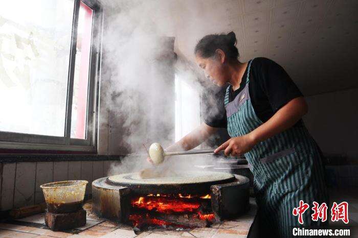 这对夫妻每天能制作五六百张煎饼,最多时一天便可收入千元。大客户下单时,这对夫妻还需要提前排产,当地很多村民和他家一样,将摊煎饼变成主业。