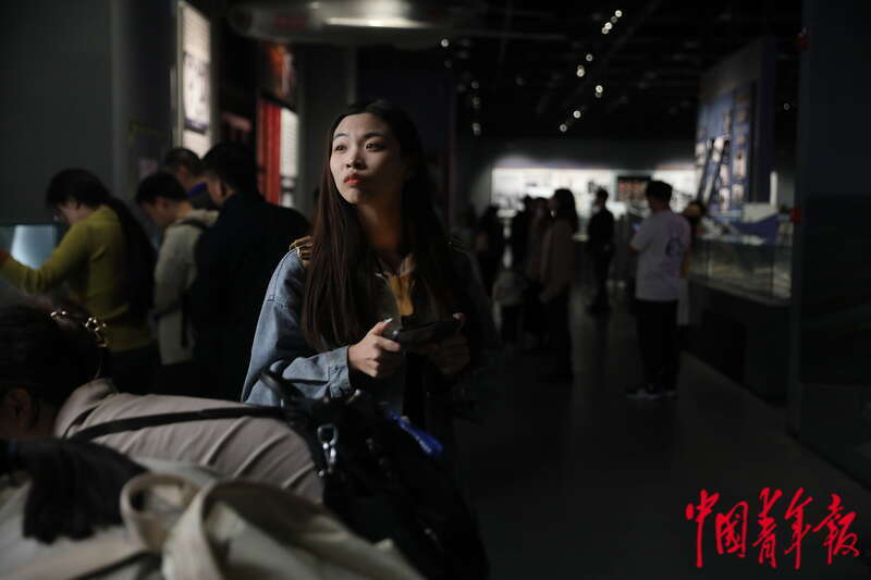 4月19日,山东青岛,中国人民解放军海军博物馆,一名女孩在展厅中参观。中青报·中青网记者 孔斯琪/摄