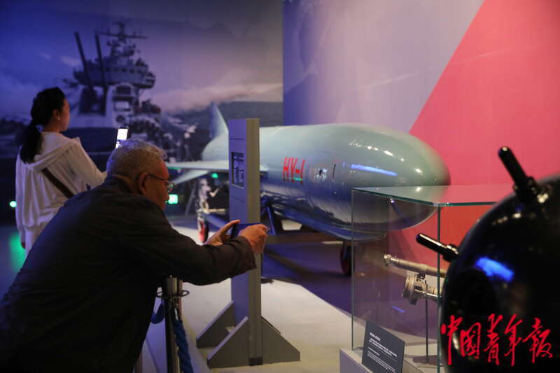 4月19日,山东青岛,中国人民解放军海军博物馆,人们在参观中国海军早期的武器、装备。中青报·中青网记者 孔斯琪/摄