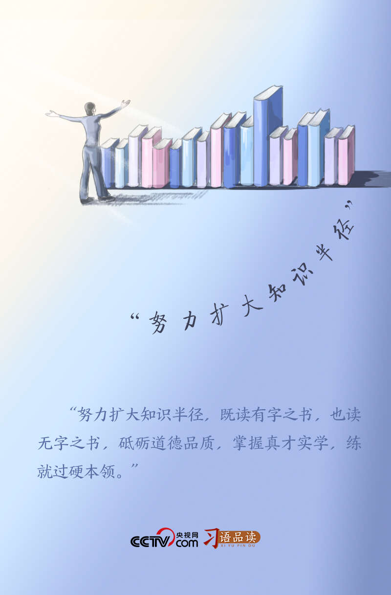 他强调:“努力扩大知识半径,既读有字之书,也读无字之书,砥砺道德品质,掌握真才实学,练就过硬本领。”