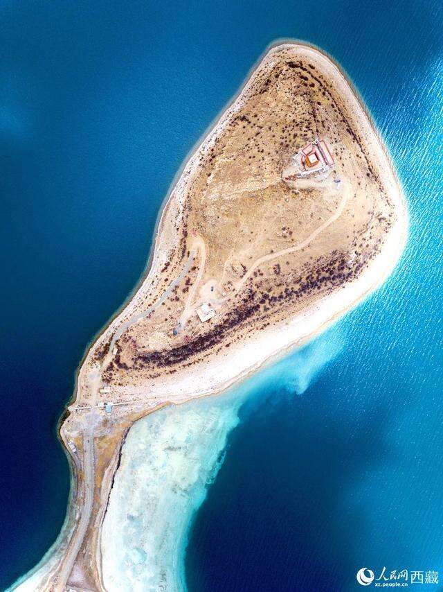 无人机视角下的西藏羊卓雍错日托寺风光。次仁罗布 摄