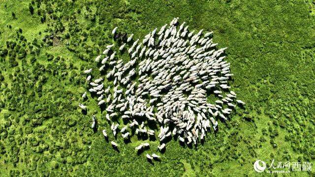 西藏绒山羊在畜牧点吃草。次仁罗布 摄