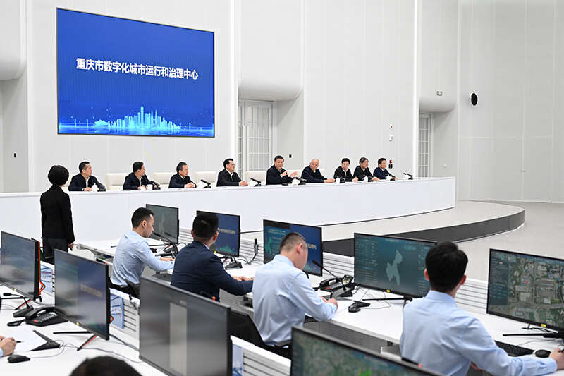 4月23日,习近平总书记在重庆市数字化城市运行和治理中心考察。