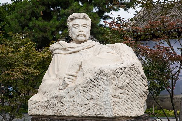周令飞介绍,这张照片拍摄于日本,比较少见。“这也是这次展览跟别的展览不一样的地方。我们用了很多原来不常见的日常生活用品和摆件,努力复原当年鲁迅真正的生活场景,呈现一个真实、有温度的鲁迅。”