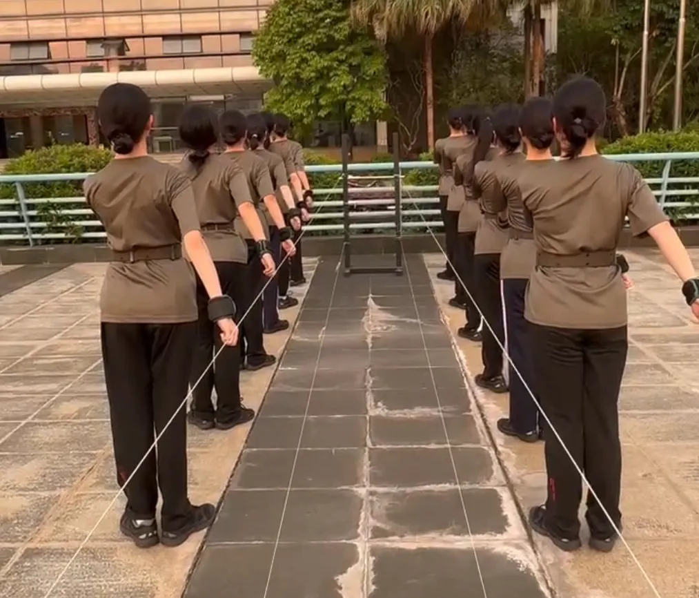 当时雨势突然增大,“眼睛几乎看不清,因为有风把雨吹打到脸上”。该校国旗护卫队队员、医学检验技术专业学生李可晴告诉中青报记者,“走过去时的风向是迎着我们的正脸的,雨水吹进眼睛有点难受。但我们平常一直都是有高标准训练的,会特意训练眼功——控制表情、减少眨眼频率,在行进的过程中,我们只需要眼神集中往前就可以了,不会影响到我们的动作。”