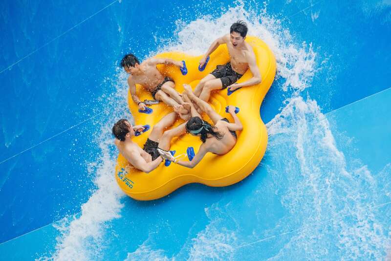 长隆水上乐园造浪池里的年轻人。邓泳怡/摄