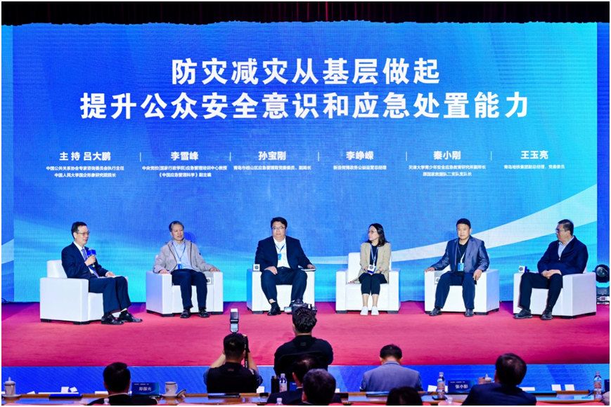 在圆桌对话环节,中国应急管理学会常务理事、中央党校(国家行政学院)应急管理培训中心教授李雪峰,青岛市崂山区应急管理局党委委员、副局长孙宝刚,新浪微博政务公益运营总经理李峥嵘,天津大学青少年安全应急教育研究所副所长、原国家救援队二支队支队长秦小刚,青岛地铁集团副总裁王玉亮围绕“提升公众安全意识和应急处置能力”主题进行了深入探讨和交流。