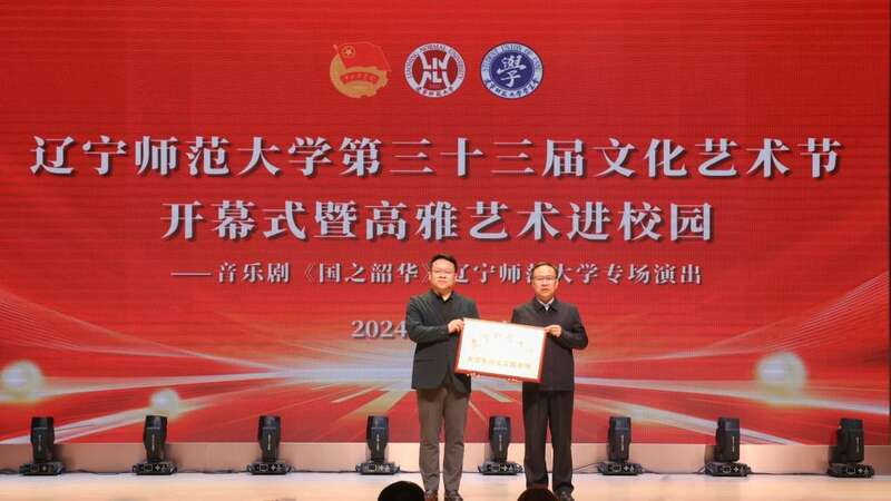 开幕式上,辽宁师范大学党委副书记丛茂国为大连歌舞剧院颁授辽宁师范大学大学生社会实践基地牌匾。音乐剧《国之韶华》由中共大连市委宣传部、大连市文化和旅游局指导,大连文化产业集团总出品、大连歌舞剧院出品,以时代楷模、辽宁师范大学优秀校友、大连海事大学曲建武教授为原型塑造了心系青年的大学辅导员方浩这一核心人物形象。音乐剧歌颂了教育工作者为青年的成长成才无私奉献、奋斗终生的崇高精神,彰显思政教育对于帮助青年树立健康的人生观、价值观的重要意义。