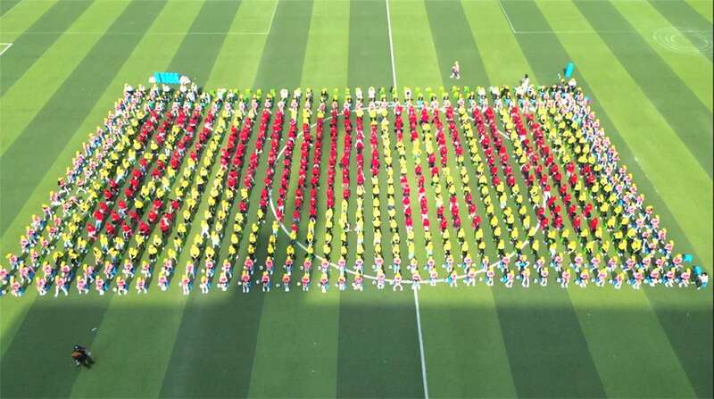 伴随着高亢激昂的《运动员进行曲》,国旗班仪仗队、校旗、旗海方阵、运动员代表队方阵、花海助威团方阵、裁判员及家长志愿者方阵,整齐列队,依次入场。场地中央由各年级小学生组成的“2024”字样鲜艳明亮。