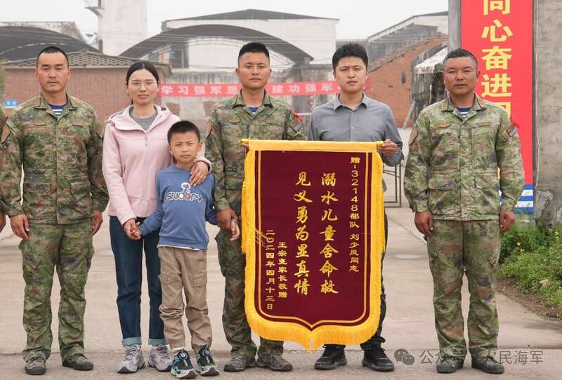 △ 赵灿一家为刘少凤(右三)送来锦旗。