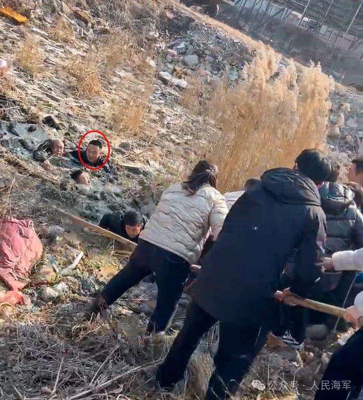 △ 村民用手机拍摄的救援现场画面,红圈内为刘少凤。