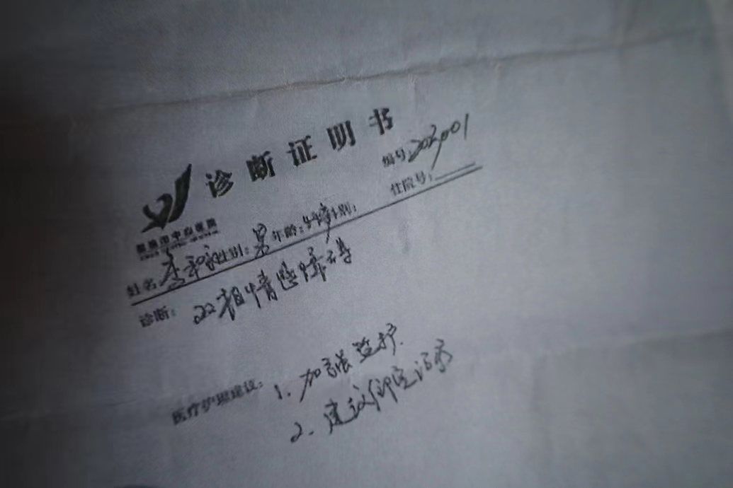 当日,李和永被诊断为“双相情感障碍”,建议加强监护和住院治疗。