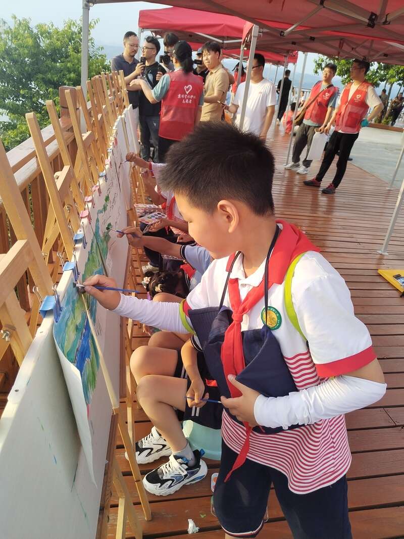 在库区“千岛画廊”,京堰青年艺术家及少先队员支起画架,把水源地“水清河畅、岸绿景美”融入画卷。青年画家张建举见到秀美的库区景色后,触景生情,与十堰8名少先队员共绘长幅写实画卷。