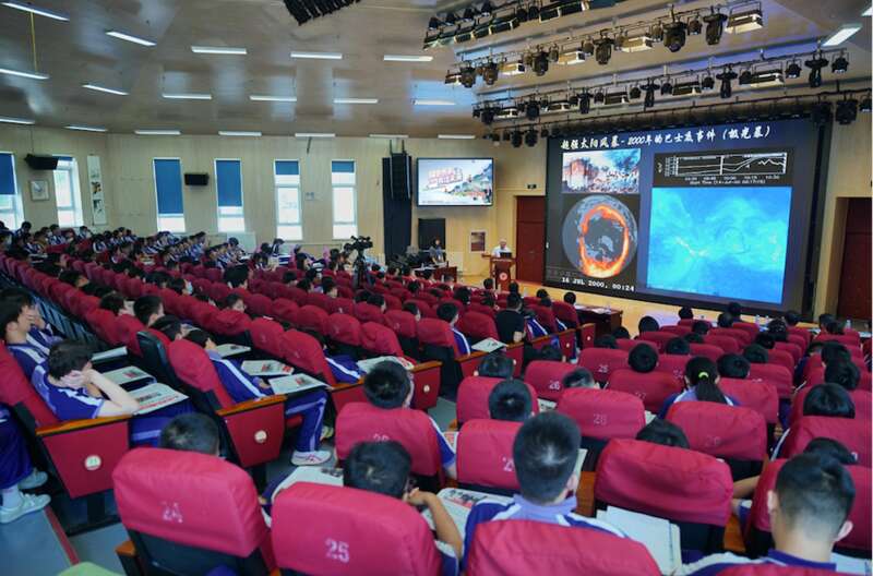 首场活动由北京市科学技术协会、北京市通州区人民政府主办,邀请了太阳物理学家、中国科学院院士、中国科学院国家天文台研究员汪景琇为同学们带来《大先生》公开课。汪景琇以《太阳和人类的家园》为主题,为师生们解读了太阳和与之相关的多个重要概念,揭示了太阳与人类家园之间的紧密联系,并结合自己在科研道路上的实际经历,分享了科学探索的点滴心得。