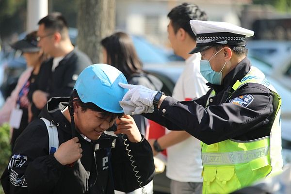 劝导中,学校老师与大队民警联手共同站岗执勤,对上下学期间骑乘电动车的学生和家长进行劝导。行动秉持“教育为主、宣传为辅”的理念,对不戴头盔违规出行的学生和家长进行了纠正,结合具体案例讲解了不正确佩戴头盔可能导致的危害和后果,宣传了交通安全知识,并对未到骑行年龄的学生进行了劝导,提醒他们要提高交通安全意识,抵制交通违法行为。