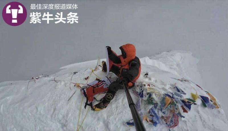 北京时间5月18日中午12点整,马超独自一人成功登顶珠峰。他疲惫地坐在珠峰顶,身后乌云密布,右手举着的国旗随着峰顶的寒风飘扬,左手拿着自拍杆环绕一周,记录下这对他来说人生中最重要的时刻。因为这一刻,马超等了12年。