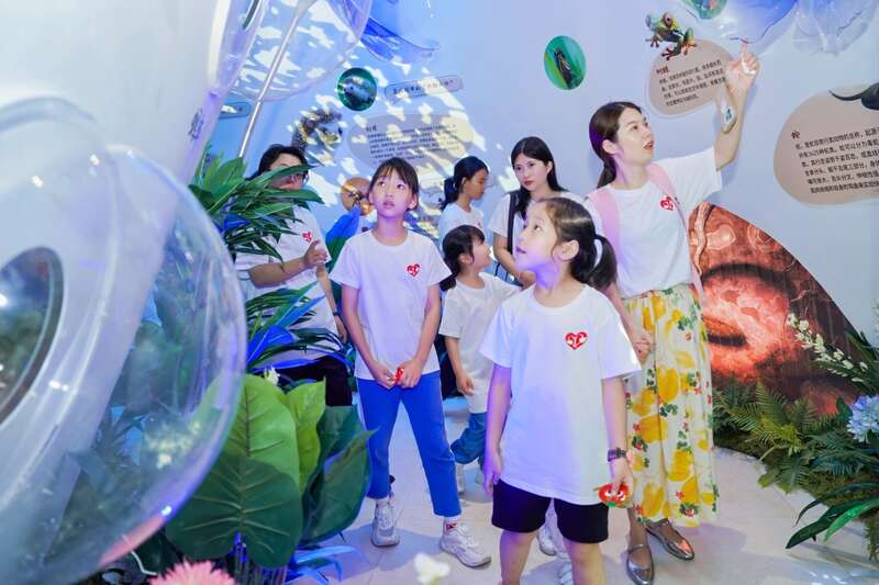 多种多样的植物、花朵和小动物,让“小候鸟”们仿佛置身于童话世界。自然老师娓娓道来的讲述,不仅让“小候鸟”们认识了森林中的动植物,了解了森林生态系统,更建立起了环境保护意识。进入沉浸式数字艺术展览区域时,全息投影中栩栩如生的小鹿和鸟儿让孩子们发出阵阵惊叹。