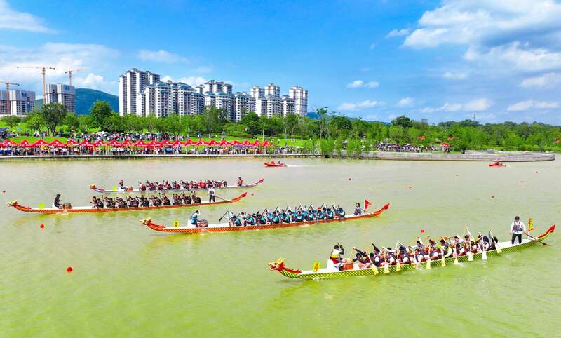 中国青年报客户端讯(中青报·中青网记者 林洁)近日,“穗城源”第二届九龙湖龙舟文化节暨龙舟邀请赛在广州市黄埔区龙湖街道举行。活动不仅设置了特色集市、美食嘉年华、传统文化展演,更有24支龙舟队上演扣人心弦的水上竞逐。