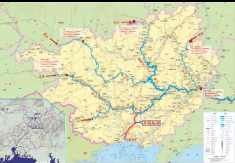 广西虽然南临北部湾,但由于独特的地理环境和海拔落差,当地大部分河流汇入西江后一路向东流入珠江后入海。长期以来,西部货物出海走水路只能从广州转港,再发往海内外市场。如果将平陆运河修通,广西乃至西部周边省份的货物经这条江海联运大通道从钦州港出海,相比原来的航线,可缩短560多公里航程。在中国工程院院士、南京水利科学研究院总工程师胡亚安看来,“平陆运河修通后,广西开放发展的‘任督二脉’就打通了”。