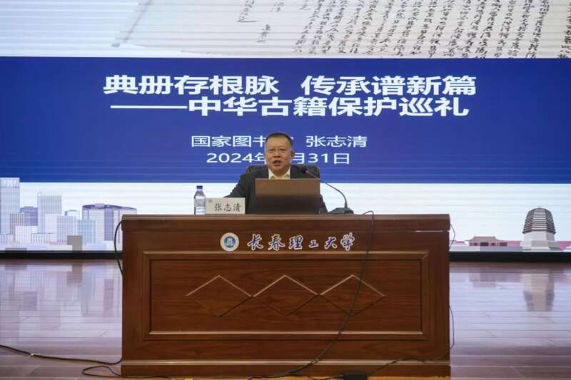 启动仪式上,吉林省图书馆向长春理工大学图书馆赠送了馆藏的高仿古籍宋版书《昭明文选》。启动仪式后,国家图书馆(国家古籍保护中心)常务副馆长张志清以“典册存根脉,传承谱新篇——古籍保护巡礼”为题,以国家图书馆馆藏珍贵古籍的保护与传承为例,讲述了古籍的历史与文化,阐释了古籍保护在传承中华优秀传统文化中的重要价值。