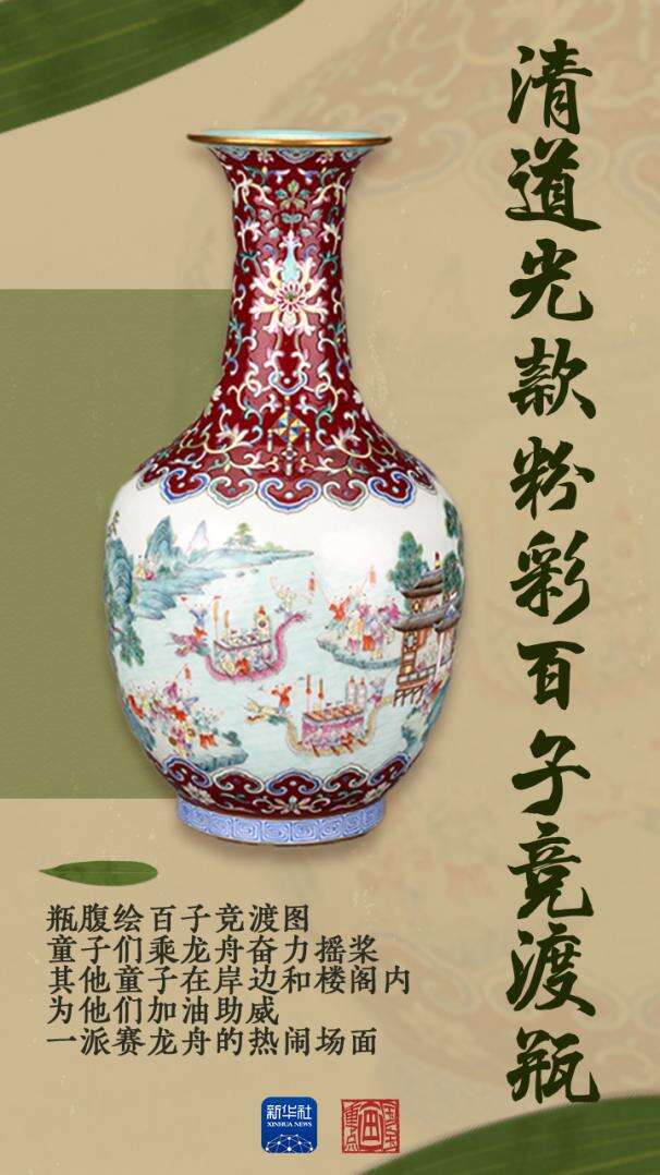 沈阳故宫博物院院藏的清道光款粉彩百子竞渡瓶