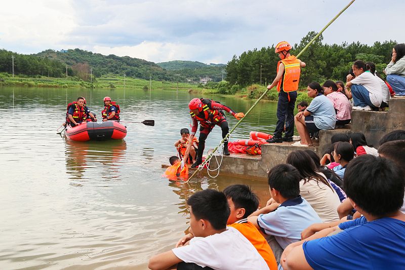 为应对近期的持续强降雨天气,湖南省新田县消防救援大队联合新田县枧头学校、利箭救援队开展汛期学生防溺水救援演练,通过抗洪防汛常识、救援器材使用、防溺水救援演练等科目,提升学生防汛防溺水安全自救知识,增强当地救援队伍的防汛应急处置和水上抢险救灾能力。
