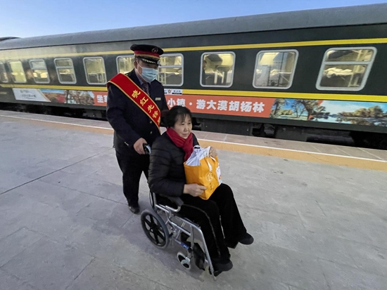 张利新帮助特殊旅客出站。