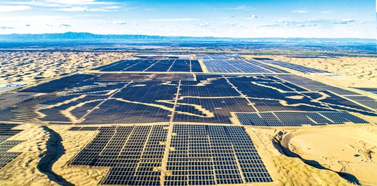 在鄂尔多斯市达拉特旗,一座长达400公里的“光伏长城”在沙漠中蜿蜒。这是由光伏板搭建的多功能新能源基地,光伏地桩能够阻止沙丘移动,减少土壤水分蒸发,起到防沙治沙的效果;光伏板则能吸收太阳能发电;光伏板下还能种植黄芪等经济作物,灌溉水是经过处理的矿区污水。可以说,一套光伏发电装置解决多个问题,实现资源的循环利用。