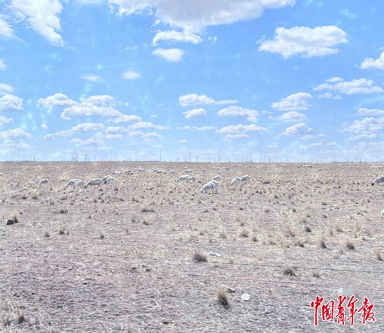 “退化后的草原,你看,风都不用吹,直接见地皮了。”王堃指着一片光秃秃的草原说,这是内蒙古自治区锡林郭勒盟贝力克牧场的一处草原。附近的居民反映,今年的雨水特别少,“草长不起来,牛羊也吃不饱”。远远看去,草原已被黄色的地皮覆盖,还有一群羊,三三两两地啃着枯黄色的干草。