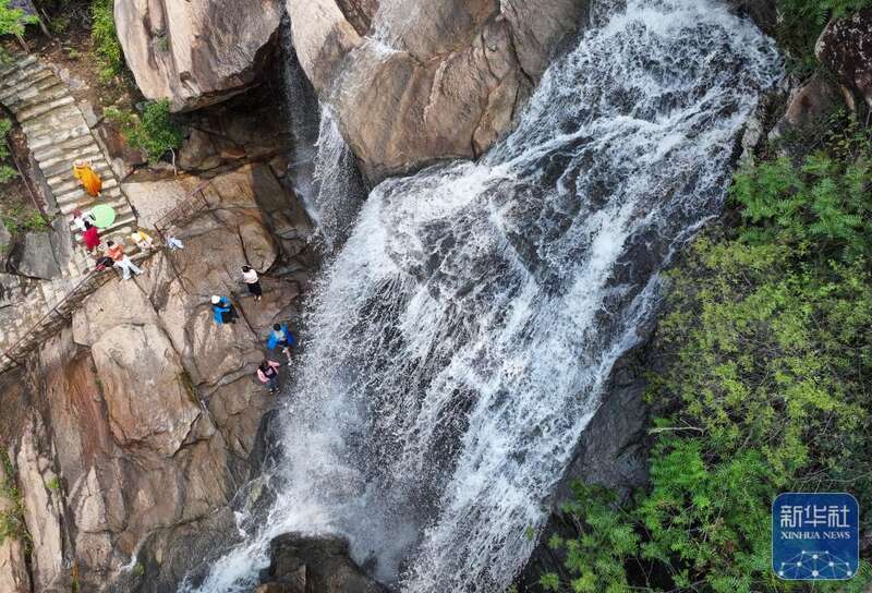 7月10日,游客在江苏省连云港市连云区宿城街道东崖屋村游玩(无人机照片)。新华社发(王健民 摄)
