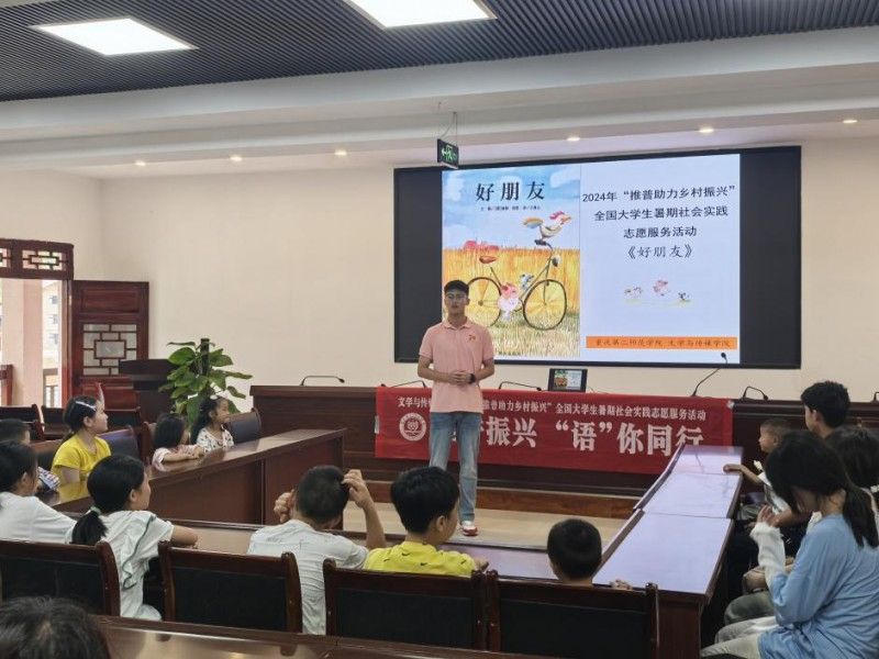 根据国家“童语同音”行动的计划,团队成员依托专业基础和特点,以多样内容多种形式促进当地儿童通用语言文字使用的规范性,将普通话推广与语言保护、时政宣讲、产业振兴、文化创意宣传等相结合,协调推进国家通用语言文字推广和语言文化保护,在普通话教学推广实践中讲解乡村好政策、帮扶农业好项目、推广振兴好做法。在本次社会实践中,实践团成员联合万州区团委、万州区恒合土家族乡党群服务中心、巫溪县团委、巫溪县博物馆、巫溪县妇女联合会、巫溪县长红村村民委员会等为当地儿童精心设置了儿童绘本品读、儿童故事精读、经典文学共读及儿童语言讲习等丰富的普通话推广课程,孩子们在轻松欢快的氛围里学习普通话,感受语言的魅力。