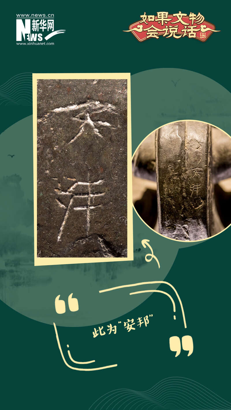 大鼎前足足根和左腹下外壁各刻有“安邦”二字,也体现了它作为安邦定国的重器地位,寄予了国泰民安的美好愿望。